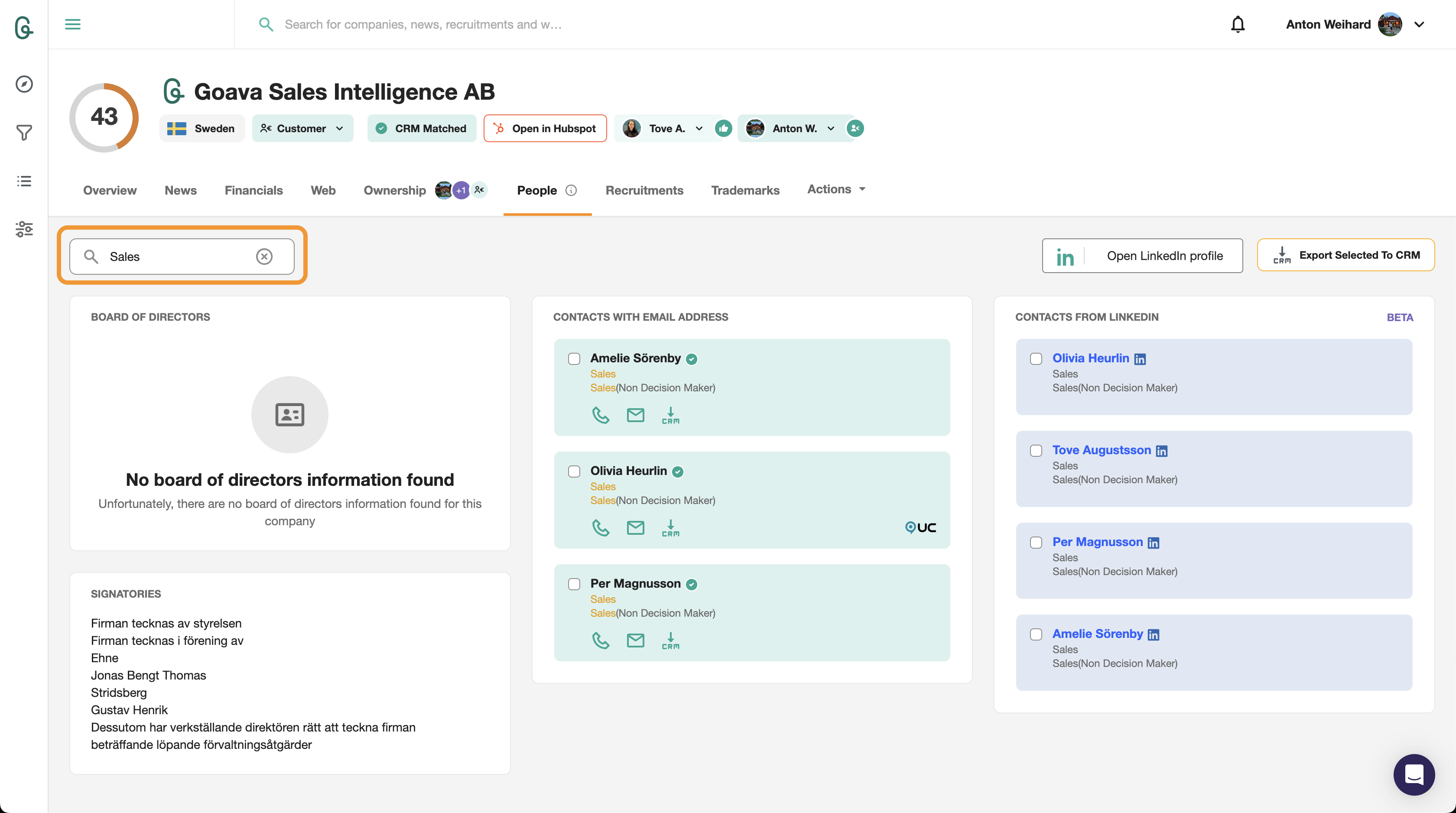 You can now see who at the company has the legal right to sign your deals. You'll find it below the board members in the People tab.