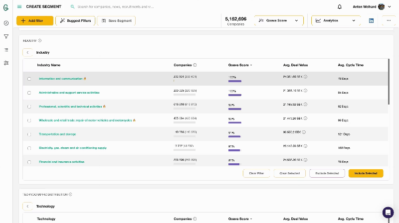 If you're looking to base your segmenting on data rather than a gut feeling - then our new Goava Score profiles are for you. Use your top customers for your Score Profile in Analytics to get instant insights into what sets them apart and create a new segment targeting similar companies.